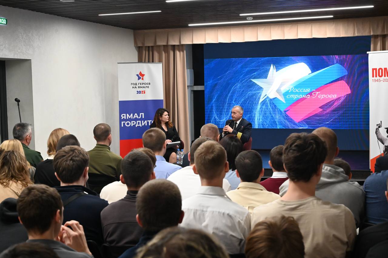 Депутат Законодательного собрания ЯНАО, координатор Ямало-Ненецкого регионального отделения Андрей Кузнецов в Надымском доме молодёжи в рамках проектов «Диалоги с героями» и «Россия — страна героев» принял участие во встрече с Героем России Дамиром Юсуповым.