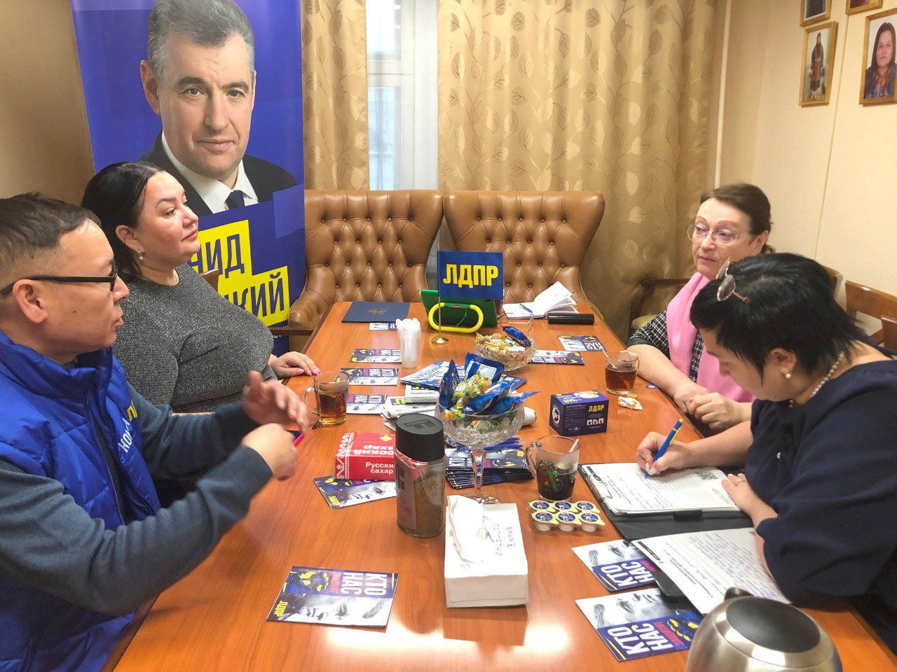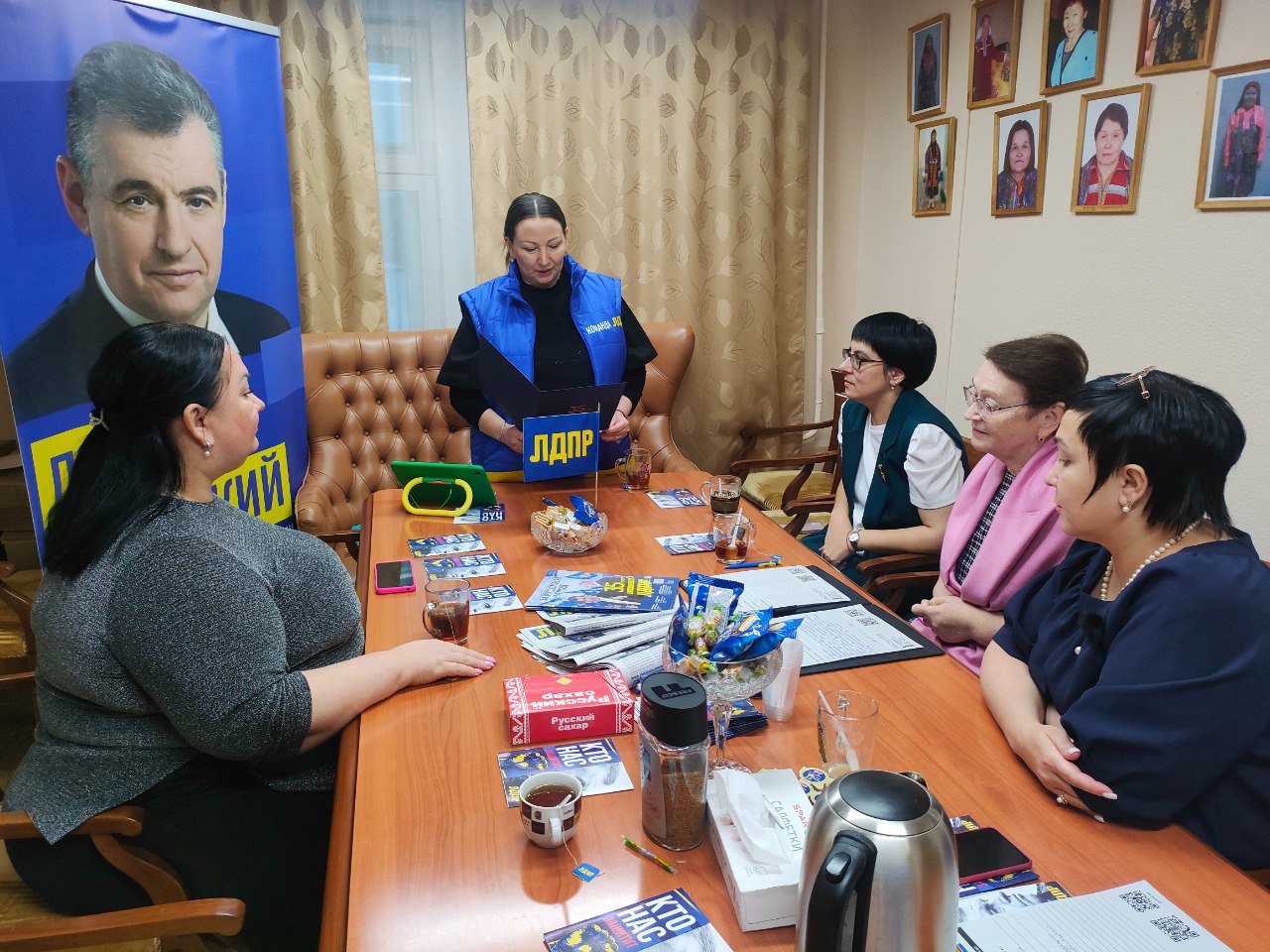 Депутат Городской думы Салехарда Сергей Созонов, заместители координатора Ямало-Ненецкого регионального отделения ЛДПР Екатерина Руснак и Сергей Вануйто организовали неформальную встречу с многодетными матерями и одинокими родительницами в региональном представительстве партии.